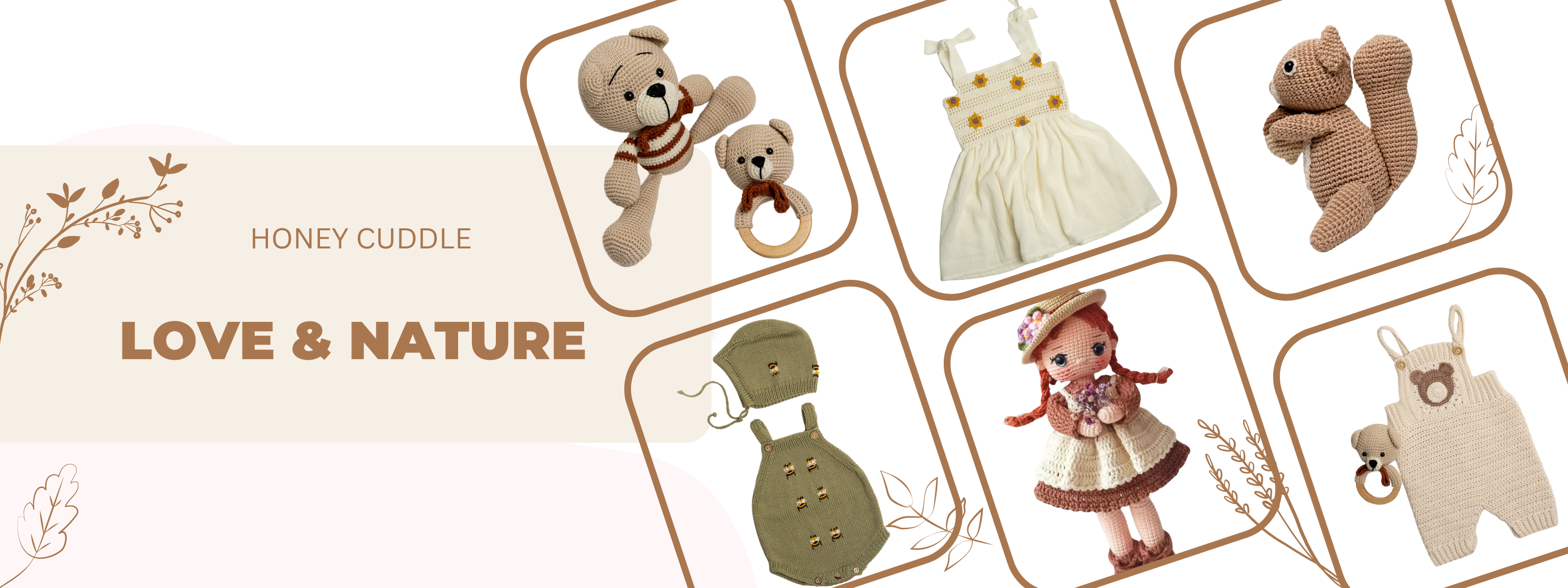 Honey Cuddle is inspired by our love of nature. We want babies and children to be wrapped in natural, healthy fabrics as they go out into the world. So we design clothing made with high-quality organic cotton, yarn and muslin.